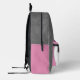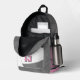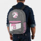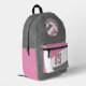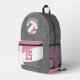 This volleyball themed backpack for girls or boys is accented with the realistic image of a volleyball that has pink, grey and white panels - the front pocket features the oversized image of that same volleyball, upon which you can easily personalise the athlete's name and jersey number - customise with school / club name and team mascot name encircling the top of the smaller volleyball graphic - you can customise the backpack's colours, currently pink & grey - a digitally-created, texture-look graphic overlies the backpack's grey components for a distressed appearance, which can be removed if desired - by katz_d_zynes