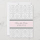 Wedding save the date announcement card with elegant light blush pink, grey and white floral damask pattern. Customisable with your wedding details, available in a wide range of matching wedding products. Contact us to request a colour change or a custom product.