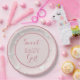 Pale pink with clouds and twinkling stars, provides the outer edge background for these whimsical little lambs. The lambs are happily leaping about in anticipation of a baby shower for a certain sweet baby girl set to arrive soon. Lots of coordinating items in our shop too!