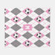 pink grey white soccer argyle pattern fleece blanket