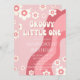 For your groovy little one, this invitation features a 1970’s inspired pink boho design, complete with pink rainbow and daisies. For a beautifully girly 1st birthday party, this simple but sweet invite has retro-theme text and background. Celebrate your baby girl’s first year with pink, daisies, and the 70s.