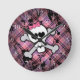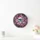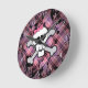 Pink Grunge Skull w/ Crossbones Hearts Round Clock