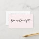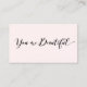 Elegant black signature calligraphy script in the words "you are beautiful" on pink background. Perfect appointment card perfect for fashion and beauty professionals, bridal shops and personal stylists. For additional matching marketing materials, custom design or