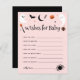 Celebrate your halloween baby shower with this adorable "Wishes for Baby" game featuring a pink spooky theme! Perfect for halloween baby shower ideas, this sweet activity fits halloween themed baby shower ideas and little boo baby shower ideas. Whether you're planning a spooky baby shower or exploring witch baby shower ideas, this card is a cute keepsake. A little boo is almost due, and a baby is brewing! Great for a baby is brewing baby shower ideas, baby is brewing shower ideas, and baby brewing shower ideas.