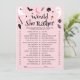 Add fun to your halloween baby shower with this Personalised Pink Would She Rather Card. Perfect for halloween themed baby shower ideas and halloween baby shower ideas, featuring a halloween baby shower theme with cute little boo baby shower ideas. Celebrate as a little boo is almost due with spooky baby shower ideas, witch baby shower ideas, and a baby is brewing baby shower ideas. Great for baby is brewing shower ideas, baby brewing shower ideas, and a baby is brewing.