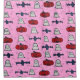 Cute Halloween print with bats, ghosts, and jack o lanterns on a pink background.