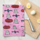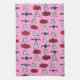 Pink Halloween Ghosts, Bats, and Jack o Lanterns Tea Towel