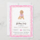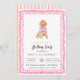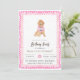 Halloween Party Invitation, dog halloween aesthetic. Pink theme with a dog holding a Halloween pumpkin trick or treat bucket.