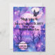 Pink Halloween Spider spooky mansion 4th birthday Invitation - Welcome to this spooktacular birthday bash. No the spider does not bite, it is the friendliest spider in town in pink and purple tones with a spooky mansion and bats flying around on the front this design also features an equally halloween themed back with a bat and wonderful pink moons. Customise your child's October birthday card or use this for a halloween party.