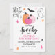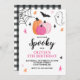 Let's get spooky! Halloween birthday party invitation. Spooktacular birthday bash invite with pink pumpkins and stars and spiders.