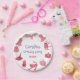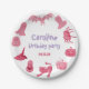 Pink Birthday party paper plate with illustrated Halloween motifs. Customise the name, date and other text as you wish.