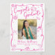 Be proud, rejoice and showcase this milestone of your favorite grad! Send out this quirky, whimsical, simple, modern, personalized 4 photo collage announcement card for an event to remember. Fun, hot pink handwritten script typography and hand drawn graduation icon sketch doodles, along with your custom photo, overlay a white background. On the back, 3 additional photos, white hand drawn doodles and your personalized copy overlay a hot pink background. Personalize the custom text with your grad’s photo, name, school and class year on the front. Add 3 more photos of your choice, your personal note, next school she’s attending, etc. on the back. Matching invites, thank you cards, cap toppers, napkins, plates and other graduation goodies are also available in this trendy and stylish collection. Guaranteed to add stylish fun to their special occasion!
