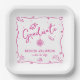 Be proud, rejoice and showcase this milestone of your favorite grad! Celebrate with this quirky, whimsical, simple, modern, custom paper plate. Fun hot pink handwritten script typography and hand drawn graduation icon sketch doodles overlay a clean white background. Personalize the custom text with your graduate’s name and class year or special message. Available in 2 sizes: 7” square or 9” square. Matching invites, thank you cards, hand fans, banners, yard signs and other graduation goodies are also available in this trendy and playful collection. Guaranteed to add stylish fun to their special party!