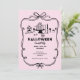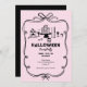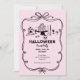 Host a spooky-chic soirée with this hand drawn Halloween Dinner Party invitation! Featuring cute vintage-style illustrations of a cake, candles, skull, and jack-o'-lantern in black ink over a pastel pink grid background with bows and a gothic frame. Perfect for elegant Halloween gatherings or haunted dinner parties. Fully customisable text.