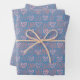 Pink Hand-Drawn Hearts Pattern on Blue Wrapping Paper Sheet