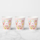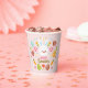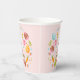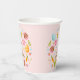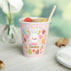 Accessorize your Easter event with our fun and colorful "Happy Easter" paper cup featuring a cute illustration featuring an Easter bunny adorned with flowers, foliage and Easter eggs on pink background.