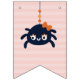 This Halloween birthday garland is perfect for decorating BOO Day celebrations, kids’ parties, and October birthdays. The design features pastel pink striped flags with spooky-cute details like a smiling ghost and playful spiders.