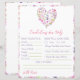 This simple and elegant baby shower Baby Predictions Advice Card/Game features a delicate watercolor floral heart with a Baby in Bloom Baby Shower theme. It is a lovely choice for your special day and will be a special keepsake to look back upon in the days to come. See matching items in the "Pink Floral Hearts Baby in Bloom Baby Shower Collection in my store.