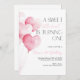 Pink Heart Balloon First Birthday Invitation