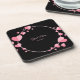 Pink Heart Black Geometric Wedding Party Elegant Coaster
