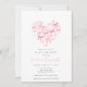 Minimal baby shower invitation that features an elegant group of watercolor pink bows that form to create a beautiful heart with a soft pink background.