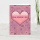 A romantic pink retro heart with flowers Valentine's Day card. Card features a large pink heart in the center which reads 'Happy Valentine's Day' on the front, on a lovely beautiful pink and purple colored flowery background. This card is available in our store with a Valentine inner greeting or blank inside. For more flirty, romantic and cute note cards and Valentine's Day cards, postage, and gift items please visit our store!