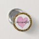 Pink Heart Gold Glitter Vaccinated 3 Cm Round Badge