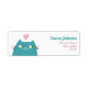 Cute, girly, cartoon, kawaii cat with pastel pink heart return address label.