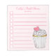Checklist notepad design features an original illustration of a pink frosted cupcake with heart and sprinkles. Just personalise with your information. Great for a baby shower, bridal shower, or birthday party.