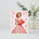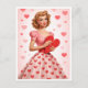 Send a little romance the old-fashioned way with this charming vintage Valentine pin-up postcard. Featuring a classic 1950s-inspired illustration of a glamorous woman in a pink heart-patterned dress, softly holding a polka-dot Valentine heart, this design captures timeless femininity and nostalgic love.