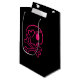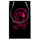 Fun skull and crossbones in pink with pink heart eye patch. Black Background.