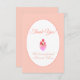 Fashion pink heart Thank You flat card with pastel coral pink background. The pink heart has three emerging roses. Texts can be personalised.