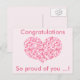 NewParkLane - Sweet and modern Gradution Postcard, with a heart, filled with a pattern of little hearts in different shades and sizes pink hearts, and quote: 'Congratulations. So proud of you ...!', in modern typography.