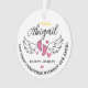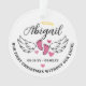 Honor your sweet little angel this first Christmas without her with an Our first Christmas without you ornament personalized with her name and birth date and date of passing. The first Christmas without our angel ornament features angel wings, a pair of pink baby footprints to symbolize your darling daughter who's ascended to heaven. A shining halo and four little hearts in pink, showing the love you'll always have for your little angel girl, and text in black. Personalize with date of birth and date of passing and a photo of your darling girl.