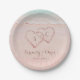 Pink hearts in the sand destination beach wedding paper plate