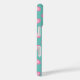 This iphone case features a repeating pattern of pink hearts on a light green background.