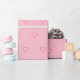This wrapping paper features shapely pink hearts with a white-washed centre on a pink background.