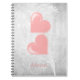 Create a unique and one of a kind journal with a Pink Hearts Personalised Spiral Photo Notebook. Notebook design features a a pair of hearts, a soft white leafy vine against a light grey grunge background with an area to personalise with your name. Additional gift items available with this design as well as a variety of colours.