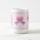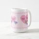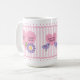 Surprise special someone with a one-of-a-kind Valentine's Day gift. This customisable coffee mug features a charming, feminine design featuring pink hearts, purple flowers, playful stripes, sweet polka dots, and cute love birds. The trendy scalloped edge borders add a touch of whimsy to this delightful mug. Personalise it by adding your name and your loved one's name to create a unique gift.