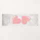 Create your own unique yoga mat with a Pink Hearts Personalised Yoga Mat. Mat design features a a pair of hearts, a soft white leafy vine against a light grey grunge background with an area to personalise with your name. Additional gift items available with this design as well as a variety of colours.