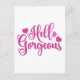 Hello Gorgeous - Cute Hello Gorgeous postcard with fancy pink lettering.