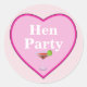 Stickers for your hen party girls. Big light and dark pink love heart with white lettering reading Hen Party. Beneath is a cocktail glass with a red cocktail. The background is pink with tiny white polka dots.