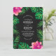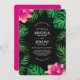 Pink Hibiscus and Tropical Leaves Wedding Invitation