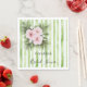 Pink Hibiscus Floral Green Stripes Bridal Shower Napkin