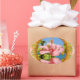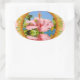 Macro of pink hibiscus flower (Hibiscus rosa-sinensis - Plant) above the water with reflection on blue sky background, digital effect, in circular frame of leaves, on transparent background