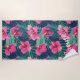 Pink Hibiscus Flowers & Tropical Palm Leaf Oasis Beach Towel