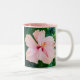 Coffee mug features the photo of a delicately coloured pink hibiscus, blooming in Hawaii.The hibiscus is a popular tropical flower.