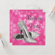 Elegant pink and white champagne glasses and glitter high heels any number birthday party invitation. You can remove the champagne glasses from the back. Add your details to the front and back of this pink champagne birthday party invitation. Please note - all of the invitation designs you will find on Zazzle are printed graphics with no actual jewels, bows, raised, embossed, or added parts or pieces.