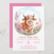 Pink Highland Cow Farmyard Magic Birthday Invitation