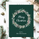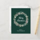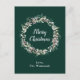 This fun and festive watercolor Christmas postcard can be personalised with a name or title. It features a watercolor Christmas wreath with pink holly and berries on a dark green background. The text combines handwritten script and modern serif fonts for an elegant and sophisticated look.